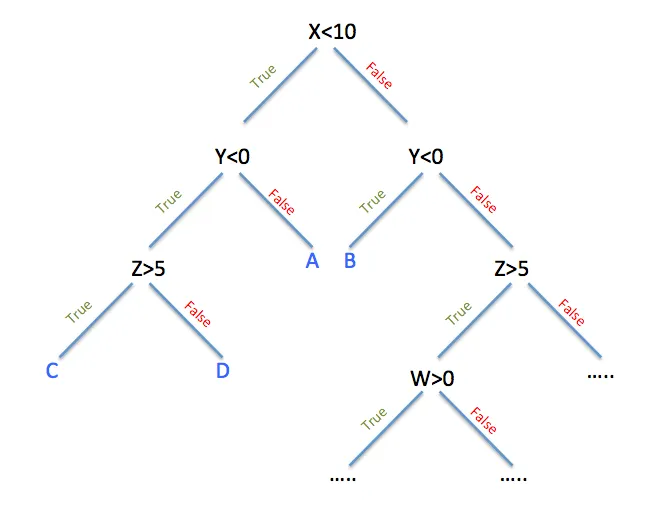 # Each node represents a decision point, with branches indicating possible outcomes.